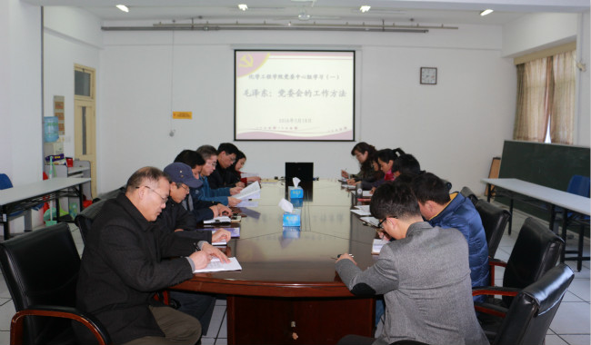 刘新河同志就学校党委关于2016年上半年党委中心组、教职工和学生的理论学习安排做了介绍和说明,把重温毛泽东同志《党委会的工作方法》纳入“学党章党规、学系列讲话,做合格党员”党委中心组学习教育重要内容的第一课。毛泽东同志《党委会的工作方法》是一篇加强党委领导班子建设、提升党的领导水平和执政能力的光辉文献。党员干部通过原文学习,深刻领会、学习掌握科学的工作方法和领导艺术,学习掌握党的政治纪律和政治规矩。