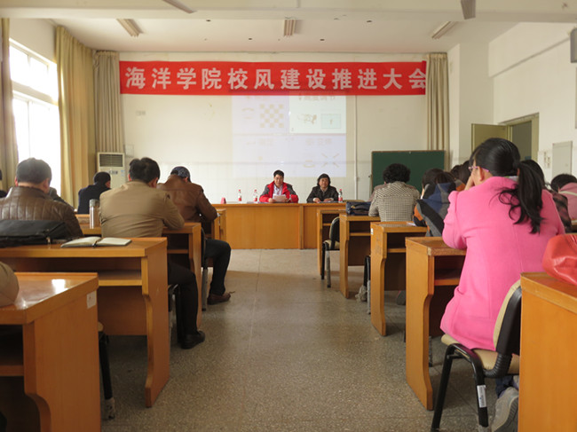 推进会上,阎斌伦院长介绍了海洋学院近期开展的校风建设工作情况,通报了三月份教学检查和上学期试卷普检情况,从教风与学风关系的高度,重申学院“全天侯”课堂出勤率检查制度,明确课堂纪律责任主体和要求。阎院长对试卷检查中出现的情况进行了详细分析和说明,要求全体教职工严格控制教学文件质量,确保不出错,确保不出教学事故。最后,阎院长对海洋学院制定作风建设实施意见提出了具体明确的要求,要求各系部科室要结合各自的工作职责,加强调研,针对教学、学风和科室作风方面存在的问题,列出清单,列出切实可行的解决措施。