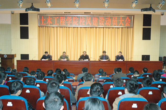 党委书记吴建新作动员。吴建新重点讲了三个问题,一是学校为什么要开展校风建设年活动?二是土木学院的院风的喜与忧?三是土木学院院风建设如何做?解读了学院长期积淀秉持的“诚朴、健达”的院训,“简单、快乐、阳光”的学院文化,以实证数据、典型案例就学院机关作风、教风及学风现状做了分析,肯定成绩,提出问题,催人深思。就如何开展好校风、院风建设,吴建新要求做到七个“增强”:一要增强自觉性,变“要我做” 为“ 我要做”;二要增强教化性,持续教育灌输,不厌其烦,常讲常新;三要增强针对性,照镜子,摆问题,列清单,重整改,求实效。四要增强换位性,学会站在对方角度看问题,换位思考,宽容包容,切忌强调自我,埋怨对立;五要增强表率性,院系领导、党员、干部要树标杆、当表率、做榜样,结对帮扶学生;六要增强激励性,发掘正能量,善用正激励;七要增强耐久性,既要打突击战,更要打持久战,建立长效机制,久久为功,务实推动校风建设取得新成效。