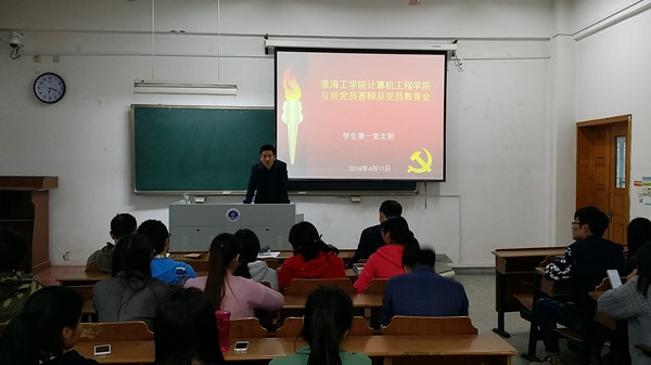 新时期新常态下,从严治党必须把好党员发展关,发展对象公开答辩会能进一步扩大民主、完善程序,不断提高党员发展管理工作科学性和公信度。为此,计算机工程学院在4月11日晚6:00在文通楼教室举办了发展对象答辩及党员教育会,参与本次答辩活动的有列入本年度党员发展计划的44位入党积极分子,为了保障每个同学充分的答辩时间,本次答辩会三个学生支部分别在III-104,III-106, III-107三个教室同时进行,每个支部都由三位老师担任答辩评委。学院党委书记赵耀华、副书记姜兵分别在学生第二党支部和第三党支部担任评委。