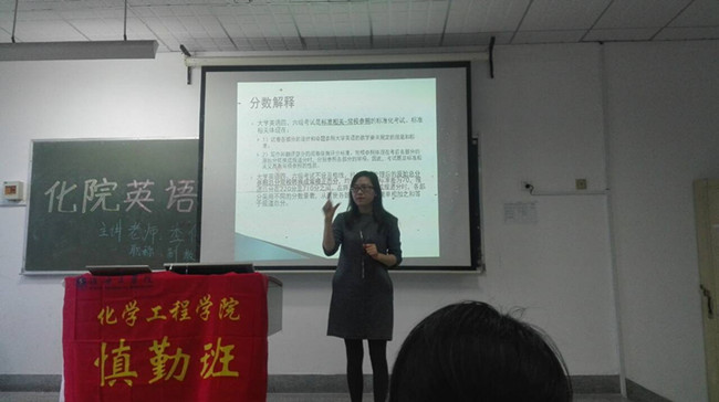 2016年 4月14日晚,化学工程学院英语四六级备考交流会在主楼206室成功举办。此次辅导交流会邀请了外国语学院的李传玲副教授主讲,会议由化学工程学院辅导员马昌老师主持。我院慎勤班全体成员以其他班级的同学近百人参加了此次会议。
