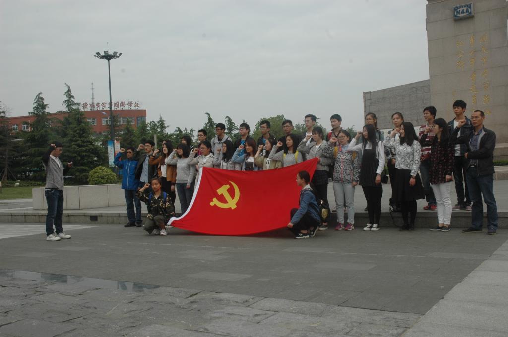 在庄严肃穆的新四军纪念纪念碑下,面对鲜艳的党旗,全体党员郑重举拳,重温入党誓词,再一次大声宣告了为共产主义事业奋斗终身的坚定理想和信念。接着,食品132刘款同学作为党员代表做了题为“加强学风建设,要从党员做起”的发言。他号召全体学生党员要树立良好的党员形象,发挥模范带头作用,要从自身抓起,小事做起,刻苦学习,全心全意为同学和老师服务,积极营造良好的学风。
