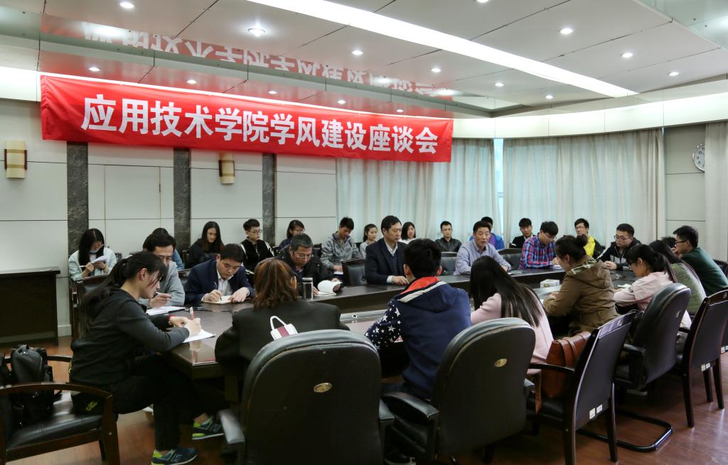 4月26日下午,应用技术学院在该院行政楼三楼会议室召开学风建设第二轮座谈会,进一步查摆学风建设中存在的问题,并通过更深层次的思考分析原因、商讨对策。应用技术学院党委副书记、副院长万金店、全体辅导员及32名学生党员代表参加了座谈。该院学生第二党支部书记孙成广主持了座谈会。
