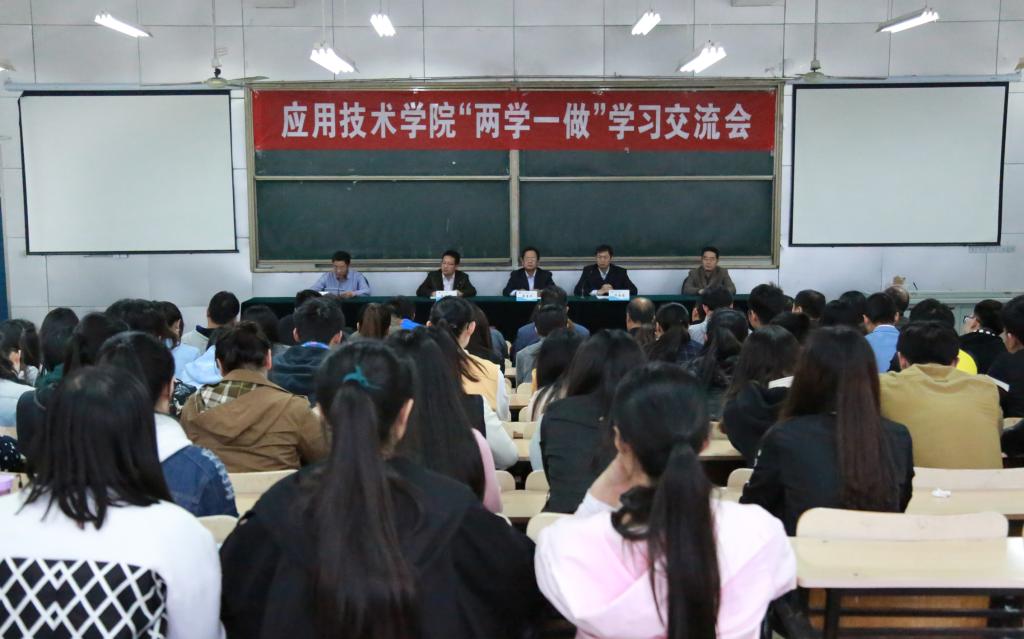 4月27日,应用技术学院在敦行楼201教室举办党员“两学一做”学习交流会,部署“两学一做”学习教育实施计划,交流学习心得体会。党委书记周清华出席会议并讲话,党委副书记万金店主持会议。全体教工和学生党员出席会议。