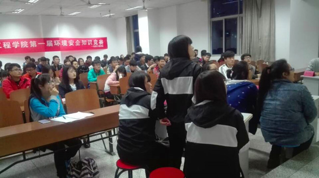 为了让更多的同学了解环保知识,提高环保理念,4月27日晚,化学工程学院环保安全知识竞赛决赛在主楼206火热开展。辅导员耿盈晴老师和马昌老师受邀参加,化学工程学院15级各班班委及慎勤班全体成员参与此次竞赛。