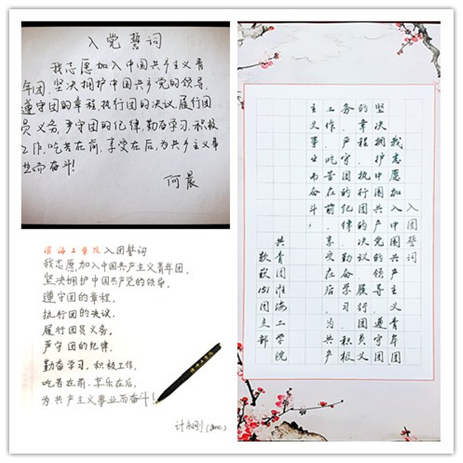 活动后,软嵌151班朱姚峰同学说道,手抄誓词,重温誓言,令我回忆起当年入团时的激动心情,今天的我们,作为一名青年团员,更要明确自己肩负的重任,继承和发扬五四精神,坚定理想信念,为成为社会主义事业的合格建设者和接班人,不懈奋斗!