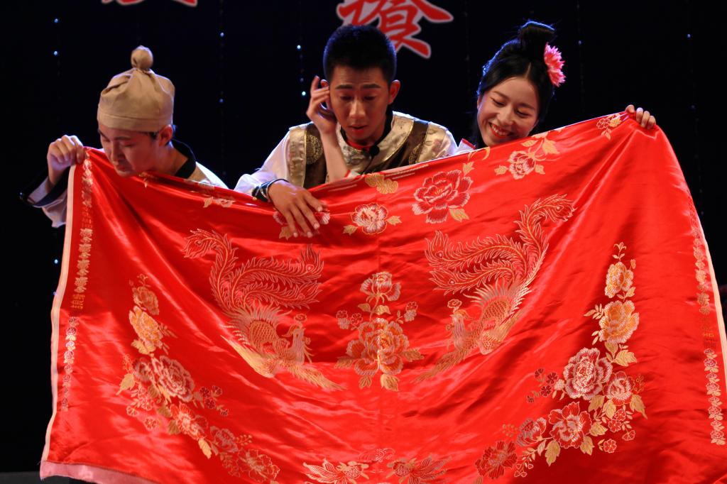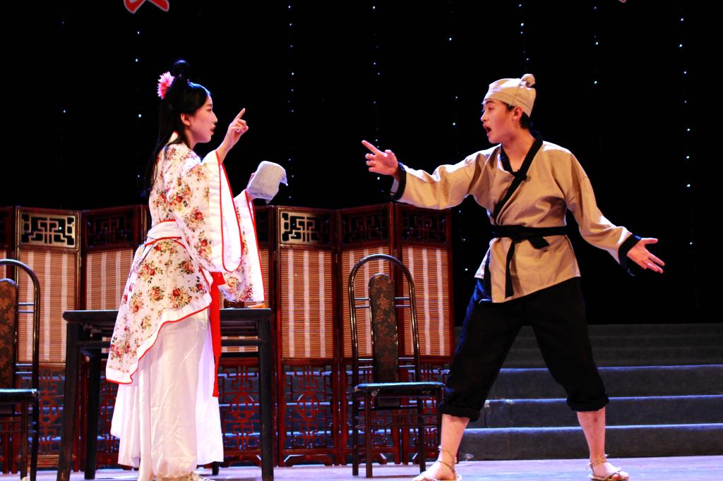 第一场《桃花源》,改编自话剧《暗恋桃花源》,讲述的是一个爱情悲剧,主人公渔夫老陶不敢表达对他的妻子春花的爱恋,一味纵容着春花,导致自己的妻子与别人偷情,老陶知道却还要装糊涂,让自己成了情感上的多余者,最后只能无力的说着自己去死好了。虽然故事结局不美好,但演员们夸张诙谐的表演赢得了观众一阵阵雷鸣般的掌声。