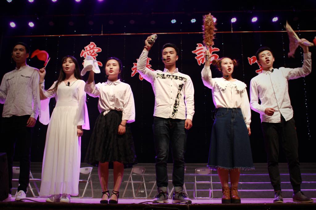 “爱情是多么美好,但是不堪一击......”伴随着缓缓亮起的灯光,一群拿着抹布、扫帚、鸡毛掸的演员齐唱着歌出场了,压轴大戏《恋爱的犀牛》上演。剧中的主角一个是物质少女明明,与一心爱着明明而又热爱动物的马路,全局淋漓尽致地演绎了两个人相爱相守相恨的爱情旅程。面对恋人的绝情,马路只能心痛的呐喊,继而陷入深深的自我折磨之中。“你是我温暖的手套,冰冷的啤酒,带着阳光味道的衬衫,日复一日的梦想。”“你是聪明的,灵巧的,伶牙俐齿的,逾不可及的,我心爱的,我的明明......”这部戏由于剧情的复杂,一个女生表示“太烧脑了,太虐了,演员太入戏了。”男主角马路的一段经典台词“一切白的东西和你相比都成了黑墨水而自惭形秽,一切无知的鸟兽因为不能说出你的名字而绝望万分,”更是引起了台下观众的共鸣。全场喝彩声不绝于耳,欢呼声此起彼伏。