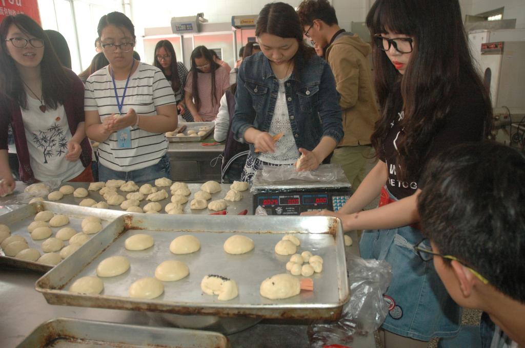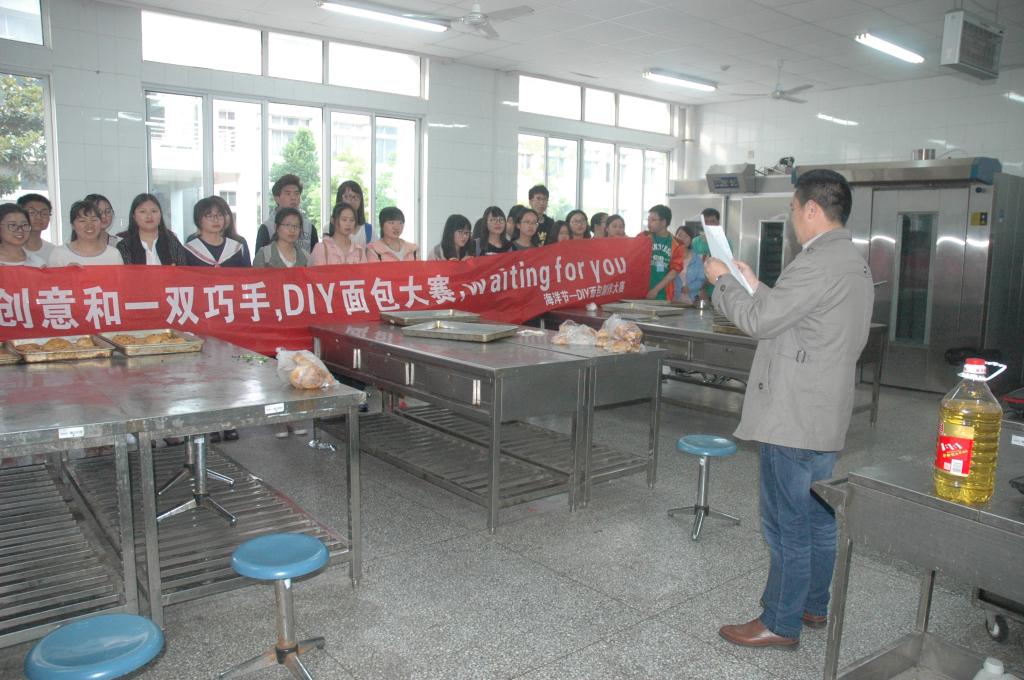 DIY制作期间,选手们都按照老师要求的力度用心揉面,尽管面团水分过多不能快速成型,选手们仍不气馁,小心翼翼地用指尖捏造着,唯恐力度不够造型不到位。经过两个小时的发酵和十分钟的高温烤制,香酥柔软的面包出炉了。看着倾注一下午心血的面团变成了诱人的舌尖上的美食,参赛选手兴奋得开始给每个面包取起名字来“这个叫小黄鸭,那个叫拼命乌龟”,各式各样的爱称层出不穷。党委书记李树安打趣道:“这一个个面包就如刚出土的珍贵文物,出炉后人们总能挖尽心思地赋予他新的名称和意义,这也寄予了同学们对劳动成果的珍惜之情呀!”