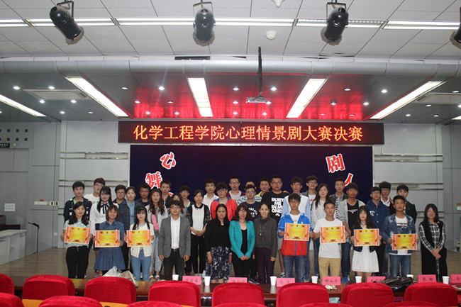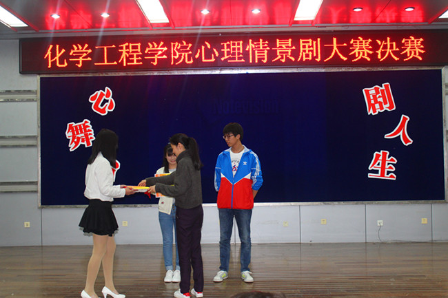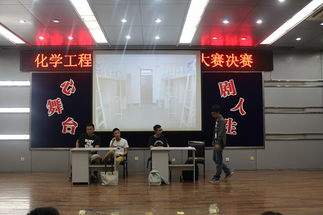 经过激烈的初赛,一共有6组班级队伍脱颖而出,进入了决赛,可以在舞台上展现他们的风采。6组队伍围绕心理问题,选取学习压力、青春、毕业季等主题自编自导自演表演情景剧,用丰富的剧情和出色的表演给观众带来不同的感受。《谁的青春不迷茫》展现了不同的生活状态下的大学生的不同未来,《传销,传消》通过表现主角的纠结,表现出传销的危害,《学习才是硬道理》为学习的重要性做了很好的注解。而化工141的《遗憾》,则已一个精致的短片开始,用温情而又不失幽默的表达方式,充分吊起了现场的氛围,巧妙的选取毕业这个主题,唤醒每个人心中的柔情,获得了评委和观众的认可,以绝对的优势,摘得一等奖的桂冠。二等奖得主为高材142、高材152,三等奖得主为化工142、安工141、材料151。在比赛的中途,加入了猜词游戏的观众互动环节,其特殊的惩罚方式也让大家开怀大笑。