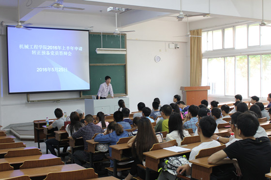 5月25日下午,机械工程学院在文通楼107举行2016年上半年预备党员转正答辩会。机械工程学院党委副书记、副院长赵求勇,学生党支部书记和全体学生党员参加会议。