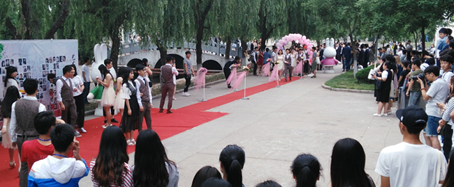 6月2日下午6:00,淮海工学院大礼堂楼入口处四只米菲兔俏皮地站立着,人群万头攒动,热闹非凡,艺术学院毕业生盛装出席毕业红毯秀,当活力四射、神采飞扬的他们走过红毯时,欢呼声和加油声不绝于耳。携上陪伴自己四年的朋友,稳健自信的每一步均代表着淮海园里的成长,都代表着离人生梦想更近一步,紧凑的快门声响和闪光灯的闪光,快速定格了一位位艺术学子在淮工永远的印迹,毕业墙上也留下了他们的串串姓名。