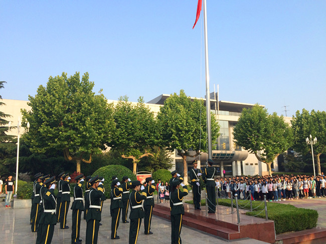 国旗护卫队飒爽英姿,迈着铿锵的步伐来到升旗台,伴随着《义勇军进行曲》,五星红旗冉冉升起,全体师生以坚定的目光向国旗行注目礼,激情满怀,无比自豪。礼毕,院团委学生副书记马丹向全体大一学生发表了《不忘初心,方得始终》的演讲,初心即本心,昭示着梦想,年轻时要树立一个远大理想的人生目标并为此而奋斗终生;不忘即坚持,伴随着创新,坚定自己的理想,不论困境与逆境都始终如一;始终即圆满,付诸于实践,心之所向,道之所终,勿让心梦惹尘埃!继而学生代表王新同学,给大家算了一笔时间账,让所有人知道了自己所浪费的时间之多,如果能做到每天早起一个小时,少玩电脑游戏,每天多背20个英语单词等,我们是不是会离我们的梦想更近一点?