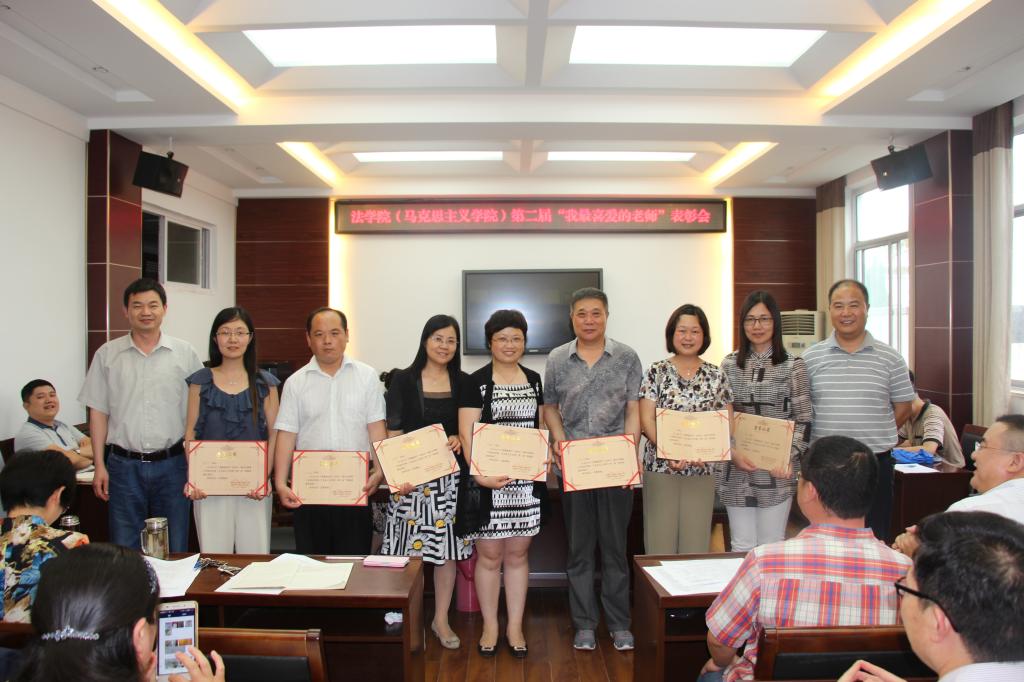 6月15日下午3点,法学院在会议室召开第二届“我最喜爱的老师”表彰会。赵晓光、吕汇、何俊武、周桂芹、钱建华、王静、蒋莹莹等7位老师受到了表彰。