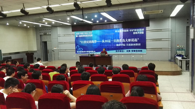 为提升我校校园文化的海洋特色,助力我校创建江苏海洋大学,6月14日晚7点,由团委、党委宣传部组织开展的蓝色海洋讲堂第二讲在我校艺术楼报告厅准时举行。海洋学院吴建新副教授面向全校师生主讲的《二十一世纪的海洋》,旨在弘扬海洋精神,传播海洋文化,提升海洋意识,形成认识海洋、保护海洋的良好氛围,为大家带来了不一样的海洋世界。