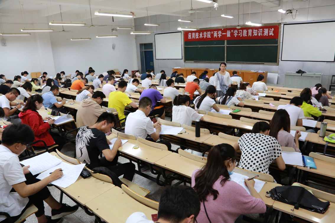此前,应用技术学院党委下发了《关于组织开展党员“两学一做”学习教育知识测试的通知》,要求各党支部高度重视,把知识测试作为促进学习教育、检验学习成效的重要抓手,组织党员系统学习党章党规党纪和习近平总书记系列重要讲话;要求全体党员必须参加学习教育知识测试,务必做到知识测试全覆盖,对测试成绩不合格的党员,将组织补考。测试前两周,该院党政办在学院校园网公布了测试复习题。各党支部组织所属党员开展集中学习,全体党员还利用工作业余时间认真进行自学。