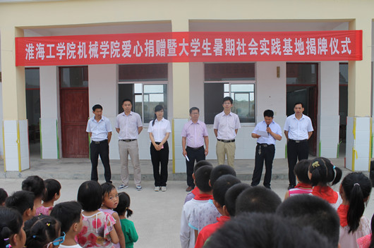 党日活动之后,机械工程学院团委和兴隆教学点双方负责人还共同为“淮海工学院大学生暑期社会实践基地”揭牌,今后机械工程学院团委将每年暑期将选派10名优秀大学生志愿者来兴隆教学点,开展大手拉小手爱心支教等社会实践活动。
