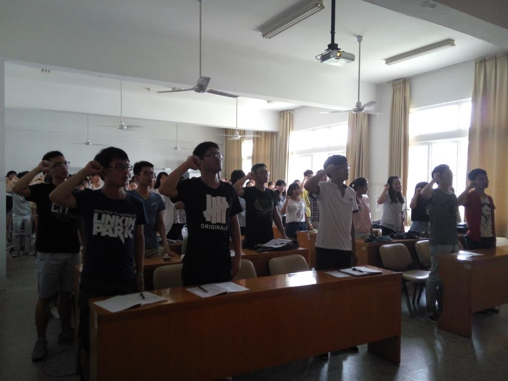 随后,全体实践团成员共同宣誓:我志愿成为一名光荣的社会实践志愿者,秉承学院优良传统,发扬志愿精神,听从安排,遵守纪律,团结协作,展现风采。为建设团结友爱、平等互助、安定美好的和谐社会贡献智慧和力量!在大家朝气蓬勃地庄严宣誓中,此次大会圆满结束,海洋学院2016年暑期社会实践正式拉开帷幕。
