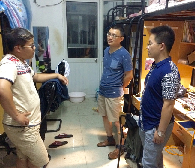 6月23日,在遭遇大暴雨的情况下,艺术学院领导依然按照原计划,深入学生宿舍送别2016届毕业生。院长申屠留芳带队深入女生宿舍,副书记王智金带队深入男生宿舍,一间一间宿舍慰问,一间一间宿舍送别。毕业生们看到老师们冒着这么大的风雨来到宿舍,连称想不到。有同学说,以为风大雨大老师们不会来了,结果还是淌着水出现了,说明艺术学院领导老师心中有学生,说明艺术学院是一个温暖的群体。