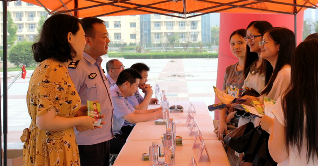 6月26日上午,商学院联合市禁毒办举办“无毒青春,健康生活”连云港市“6·26”国际禁毒日咨询宣传暨禁毒宣传进校园活动。市禁毒办主任、市公安局局党委委员、副局长杨德祥、海州区公安分局禁毒大队政委匡新海、海州区公安分局副局长路涛、淮海工学院保卫处副处长仲崇宏、商学院副院长张瑞龙出席活动。市教育局、团市委、市妇联、市疾控中心、市第四人民医院、市戒毒所、市易制毒化学品行业协会等单位领导等单位相关部门负责人一同参加了活动。