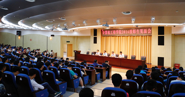 9月4日上午,计算机工程学院在学术会议中心黄海厅举行2016级新生开学典礼暨师生见面会。计算机工程学院党政领导、系主任、党支部书记、辅导员、新生班主任以及近300名2016级新生参加了大会,院党委书记赵耀华主持会议。