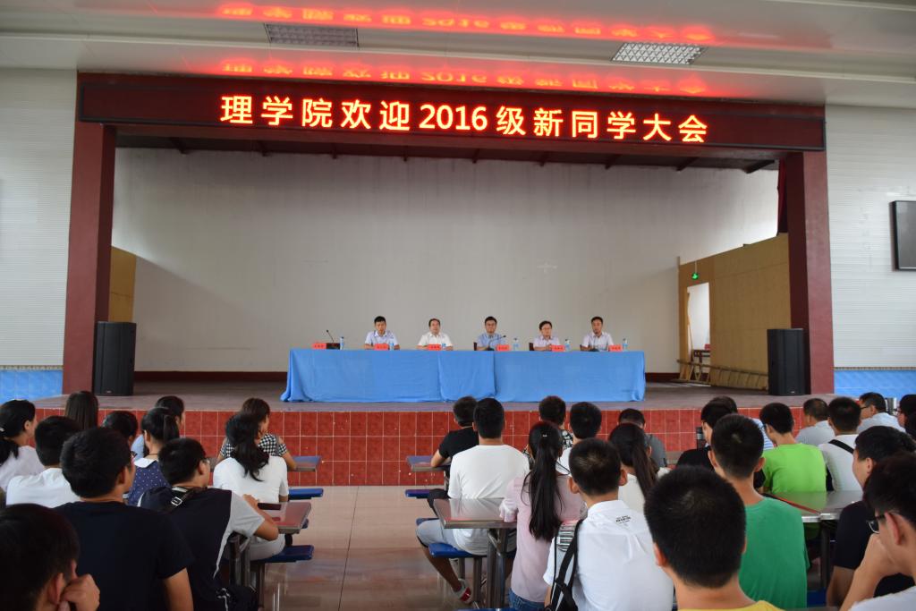 9月4日下午,理学院2016级迎新大会在通灌校区前程餐厅隆重举行,理学院党政负责人、系主任、2016级班主任、全体辅导员及2016级全体新生参加了大会。大会由理学院党委副书记陈德翼主持。