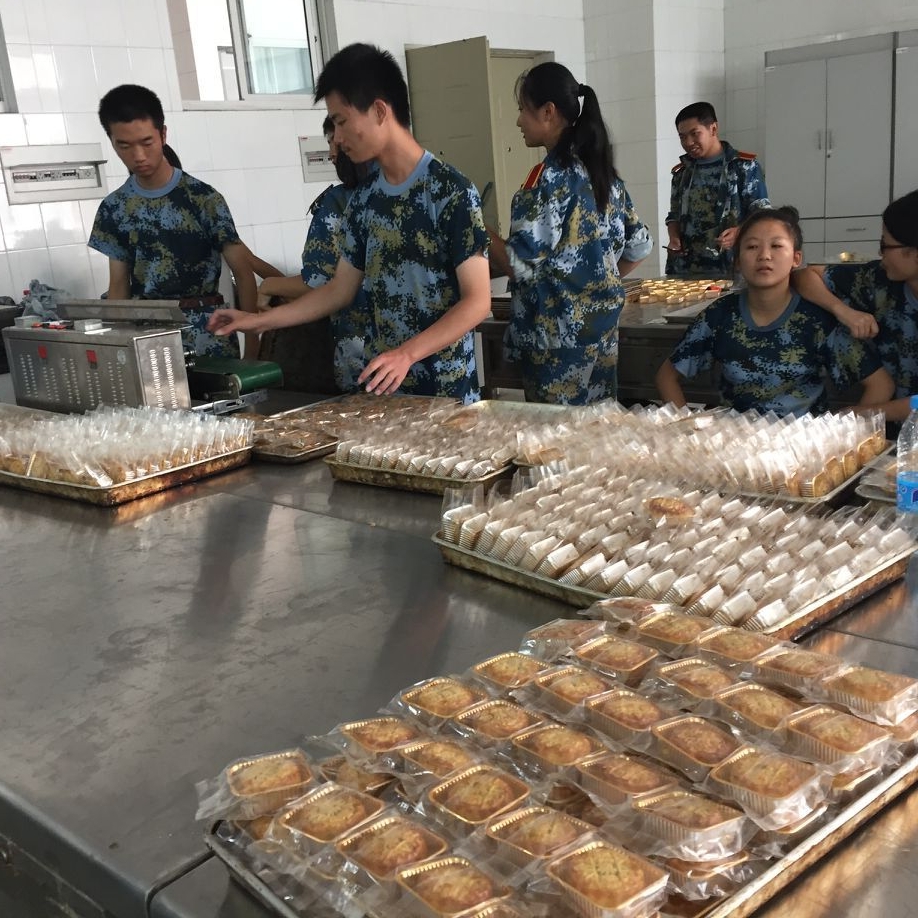 生动地讲解后,同学们便挽起袖子跃跃欲试。大家有条不紊、分工协作,负责称量的同学小心翼翼地拿捏着馅料,在秤上认真比对。揉馅的同学将馅儿揉成球状包进月饼皮中,盘老师指着馅球指导说:“揉陷在整个过程中十分重要,稍不留神就会出现露馅的问题。” 接着,同学们将月饼放入模具中定型,大家操作流畅,不一会儿,一个个精致的月饼就制作成功了。最后进行月饼烘烤,当月饼从烤箱中拿出来的时候,香味四溢,同学们看着一盘盘小巧美观的月饼,纷纷拍手欢呼。