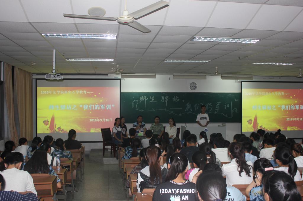 法学院的师生驿站活动已经进行了第三期,作为老师和学生沟通的桥梁,师生驿站,贴近学生,以学生为本,关注学生的内心世界,深受学生欢迎。本次师生驿站活动,着眼于军训,以军训为媒介,搭建军训学员感悟军训的桥梁,以此培养他们的爱国主义情操,激发他们积极向上的奋斗精神,取得了积极的效果,也拉开了法学院2016年新生入学教育的大幕。