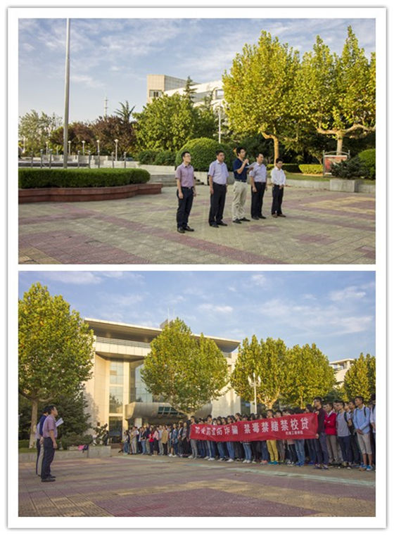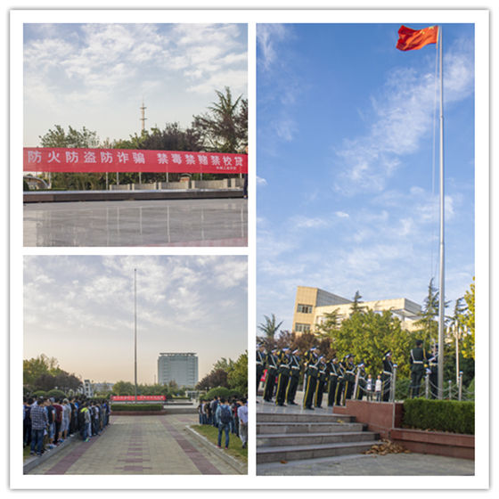 晨光微曦,秋凉未霜。为加强全院师生的安全警示教育,提升全院师生的安全防范意识,9月19日上午6点30分,机械工程学院举行以“防火防盗防诈骗,禁毒禁赌禁校贷”为主题的升旗仪式。机械工程学院党政领导,全体辅导员及全院学生参加了本次升旗仪式。