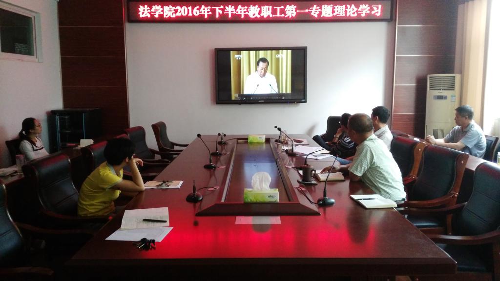 9月22日下午,法学院在文渊楼216会议室组织全体教职工观看《李保国同志先进事迹报告会》,法学院全体院领导出席。