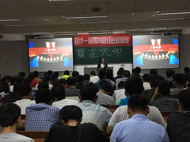 10月12日下午3点,机械工程学院邀请江苏学信职业培训学院的三位专业讲师,在通灌校区分三个场地同时为全体2016级学生做了主题为《赢在大学》的职业生涯规划报告。
