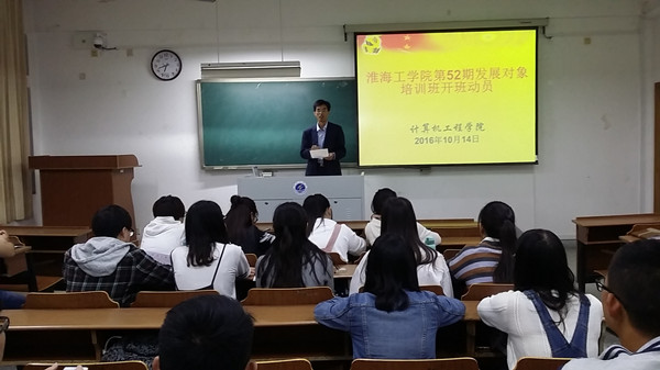 10月14日晚上6:30,计算机工程学院在III-204教室举办了第五十二期发展对象培训班的开班仪式,学院党委副书记姜兵主持并为同学了上了第一堂党课,32名入党积极分子参加了本次培训课程。