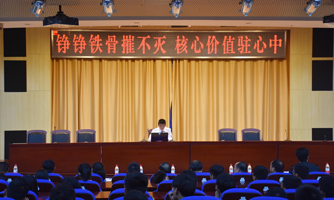 10月17日19时,测绘与海洋信息学院“铮铮铁骨摧不灭 核心价值驻心中”主题报告会于苍梧校区会议中心黄海厅举行,300多名学生聆听了两位退役大学生士兵携笔从戎的心路历程和昂扬奋进的军旅生活。此次报告会得到学校领导及有关部门的大力支持,副校长王洪法、学生处处长汤洪涛、武装部部长马建新、团委书记朱国军等出席了本次报告会。