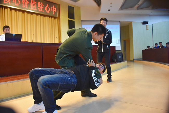 优秀大学生士兵夏天深有感触地说,“感谢军营的历练使我更坚强、更有耐力……对未来无所畏惧,坚持努力成为更优秀的人。”优秀大学生士兵余汛发自肺腑地讲到,“感谢部队,她教会我很多,也改变了我很多。部队向我展示了这个国家的军人为这个国家的付出,爱国不只是军人的事,是我们全民族的事,大学生更要首当其冲,理性爱国,用知识武装自己,时刻准备为国家奉献一切!”。退伍士兵和现场学生的互动交流环节更是高潮迭起,面对一位女同学的要求,夏天当场演示了擒拿动作,看的现场同学嘘声不已,掌声不断。武装部部长马建新在提问环节也表达了对两位优秀的大学生士兵的自豪之情。