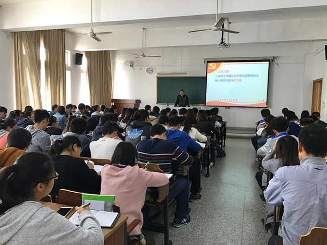 10月19日下午,化学工程学院党委书记刘新河同志在文通楼201教室为学生党员讲“不忘初心,继续前行”专题党课,主要围绕习近平总书记在庆祝中国共产党成立95周年大会上的讲话展开。学生支部书记、入党积极分子参加此次党课学习。
