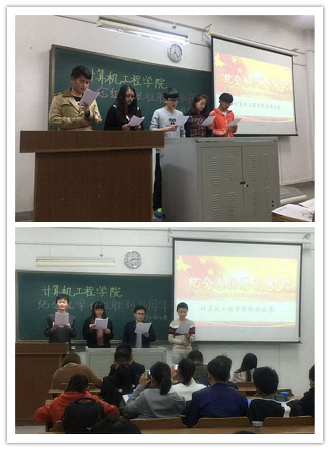 长征,是一首雄壮、豪迈、大气磅礴的革命交响曲!长征,把惊涛壮观推出,把日出瑰丽托起,让松柏昂首挺拔,让雄鹰翱翔蓝天!在纪念红军长征胜利80周年胜利之际,计算机工程学院举办此次朗诵比赛,希望激励更多同学时时不忘民族精神、奉献精神,将长征精神永远发扬,代代传承下去。