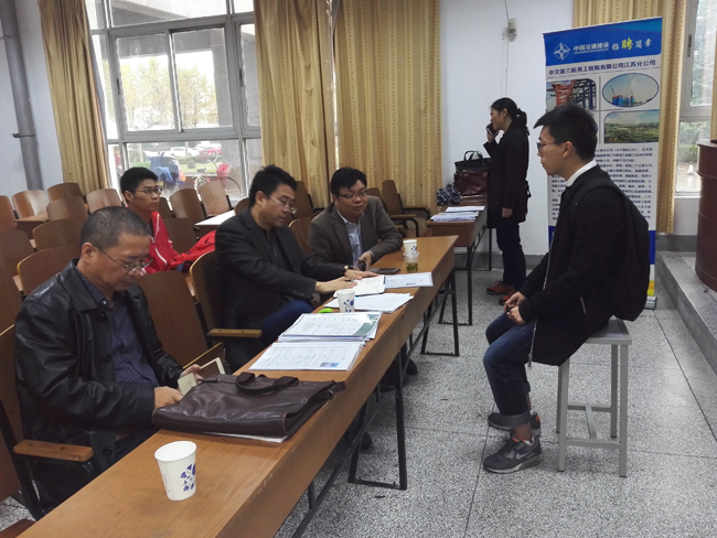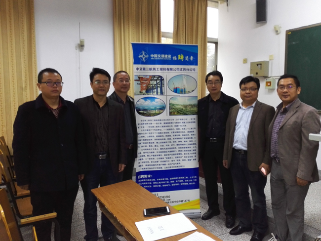 10月26日,中交第三航务工程局有限公司江苏分公司来到土木与港海工程学院举办专场招聘会,院党委书记吴建新、副书记李明金会见中交三航江苏分公司一行六人。上午九点招聘会在苍梧校区主楼103举办,来自土木、工管、港航、测绘、安全工程等专业的近70名毕业生参加。