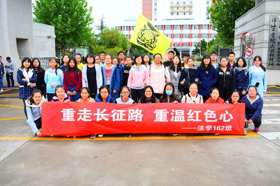 10月26日,法学院法学161、162团支部开展了“重走长征路,重温红色心”主题团日活动。同学们冒着绵绵细雨,高举着班旗从通灌校区步行至革命纪念馆,以自身行动感悟着二万五千里长征的艰辛。