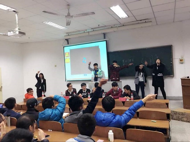 随后,新生自由问答环节中,研究生代表频频回答新生们的提问,有同学提出:“我的专业是冷门专业,到即将毕业时,是该选择去工作,还是选择去考研?”学长学姐们皆给予考研的肯定答复,马昌老师更是以自己的一个同学放弃优越工作,选择去读博的亲身例子表明考研继续深造的必要性,马昌老师说到:“同学们应尽快把自己的信仰具体化,并赋予实际行动”。活动接近尾声,主持人让同学们在纸上写出自己的理想与目标。最后,在化伦艺术团歌唱组同学们演唱的歌曲《我相信》中,此次活动的圆满结束。