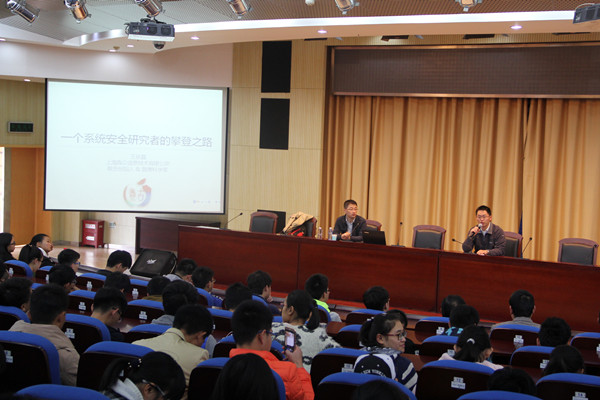 报告会最后,在场的师生和王铁磊博士进行了互动,对于老师和同学们提出的关于系统安全学习、手机入侵防护等方面的问题作了详细的回答。王铁磊博士深入浅出、风趣幽默的演讲给在场的师生留下了深刻的印象。