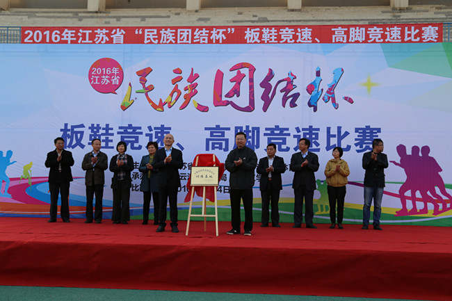 在热烈的掌声中,校党委副书记、副校长宁晓明与江苏省民委民族处处长刘克元共同为我校江苏省少数民族传统体育项目训练基地揭牌。
