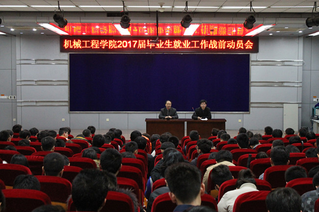 为了让毕业生充分认识到今年的就业形势,树立正确的就业观,保持良好的就业心态,提前做好就业准备,迎接人才招聘高峰,实现早就业、高质量就业。11月7日晚,机械学院于艺术楼报告厅召开了2017届毕业生就业工作战前动员会,学院党委书记毛纪登、副书记赵求勇、全体辅导员以及300余位准备就业学生参加了动员会。