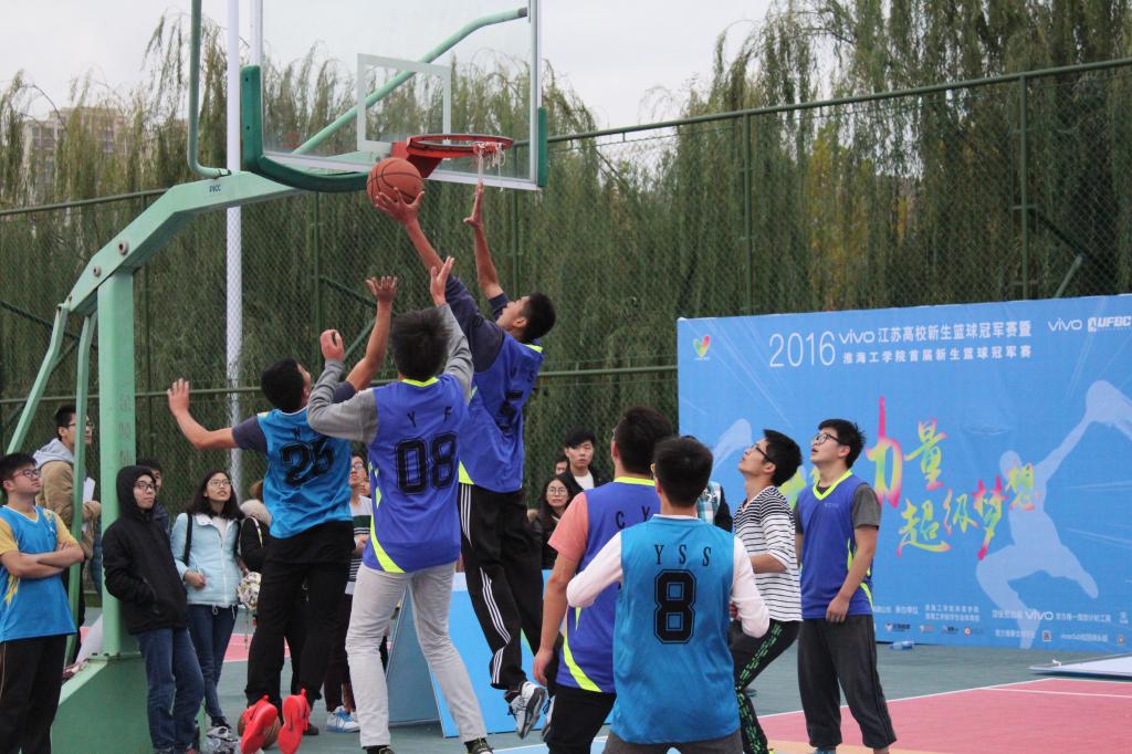 赛场上,身着运动服的健儿们热情洋溢,身着整齐的队服做着赛前准备,等待比赛的开始。比赛一开始,双方队员都迅速进入状态,均采取以功为守的战术,打的异常激进,凭借矫健熟练的运球动与传球,直逼篮板。由于双方选手实力相当,在比赛第一节,双方比分一直不相上下,难分胜负。进行到第二节时,队员们开始完全发挥出自己的实力。只见环工15的0号选手,以个人强劲的突防能力,配以快攻,快速穿梭在篮球场上,在加以刁钻的投篮技术,为环工15队频频拿分。安工14队队长凭借身高优势,多次进球,赢来阵阵欢呼。