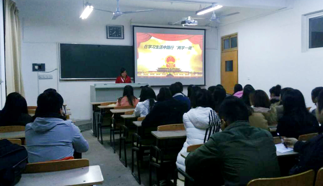 在“两学一做”学习教育中,应用技术学院学生党支部积极探索党课教育新途径,鼓励每位学生党员主动走上讲台将所学、所做、所思、所悟讲给身边的入党积极分子、青年团员和普通群众听,通过生带生双向教育深化内涵、增强效果。