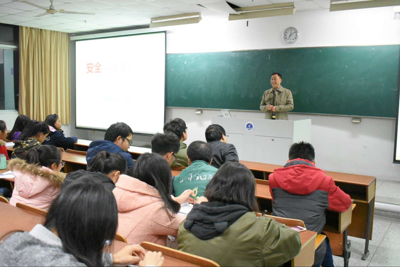 11月15日晚七点,法学院新生入学教育之安全教育讲座在TZ205教室顺利举办。本次讲座以“安全——永恒的旋律”为主题,由保卫处处长马建新主讲。法学院党总支副书记、副院长黄金虎和全体2016级新生参加了讲座。