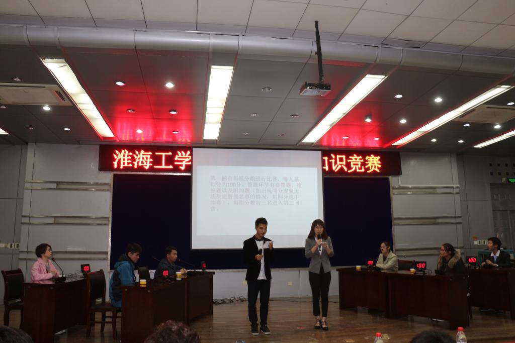 比赛共分两轮进行,第一轮获胜的6名选手进入第二轮,进行最终的角逐。比赛题型分为必答题、抢答题、风险题,考察的法律知识包括宪法、民法、刑法以及淮海工学院学生违纪处分实施细则。贴近生活的试题,引发选手及在场观众的共鸣,选手们精彩的作答更是博得观众阵阵掌声,而新颖的抢答器所发出的犯规提示,为紧张的比赛注入了些许轻松。最终,来自水产161班的柴学鼎同学,凭借敏捷的思维和丰富的知识,获得一等奖,法学161班陶凡、法学162班李颜分获二、三等奖,行管152班王月获得最具人气奖。