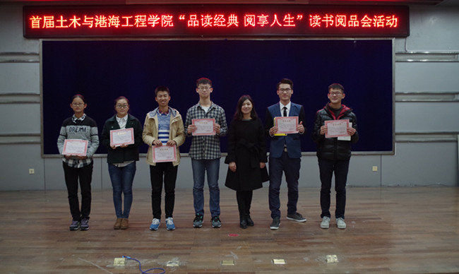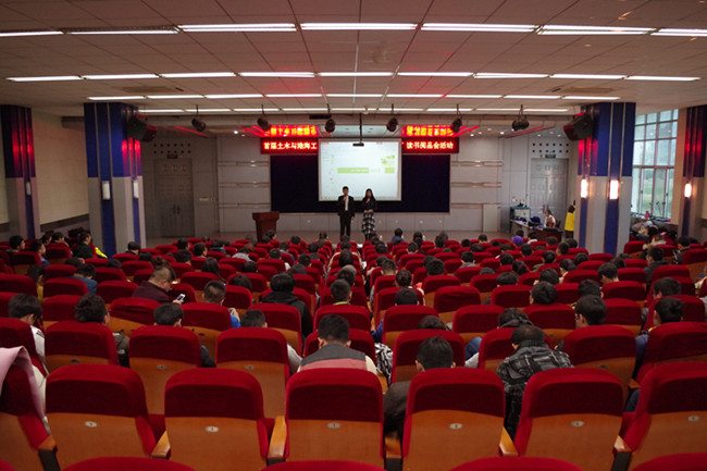 2016年11月20日下午,首届土木与港海工程学院读书阅品会活动在淮海工学院苍梧校区艺术楼报告厅圆满举行。出席本次活动的嘉宾有辅导员老师卞辉,学生会副主席丁飞、刘怡,新媒体副主任戴磊、张森,团委副书记周笑寒,权益部部长朱晨以及纪检部部长柏桢。