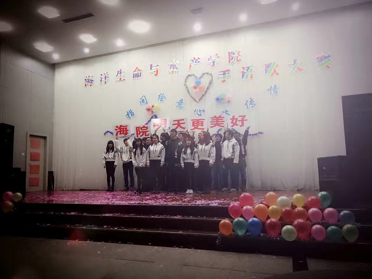 12月2日19点,海洋生命与水产学院第八届手语歌大赛在艺术楼102落下帷幕。海洋生命与水产学院党委副书记马志同,辅导员王静、陶亚楠,新生班主任陈香凝、高迎莉、蔡月凤等老师受邀担任评审,全体大一班级参加此次比赛。