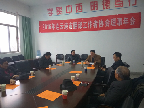 年会开始,协会秘书长宣读了连云港市科协同意新任理事长由外国语学院院长王聿良担任的决议。接着,新任理事长就过去一年协会所取得的成就、目前存在的问题以及今后工作的开展,对2016年度工作进行了总结。仅在2016年短短一年的时间里协会连续被评为“社会服务先进单位”、“江苏省翻译协会常务理事单位”,并组织参加了连博会、中哈物流研讨会等多个项目活动。