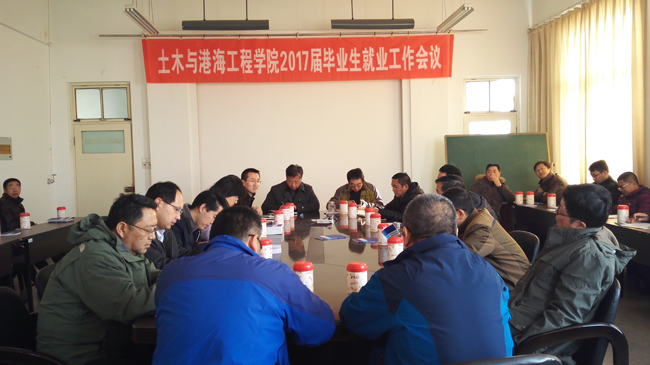 12月7日下午,土木与港海工程学院在学院会议室召开就业工作专题会议,部署2017届毕业生就业工作。学院党委书记吴建新、副院长张三柱、朱文瑾,副书记李明金,系主任,毕业班班主任,辅导员参加,会议由学院党委副书记李明金主持。
